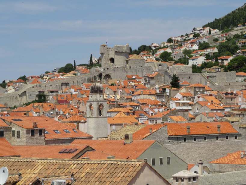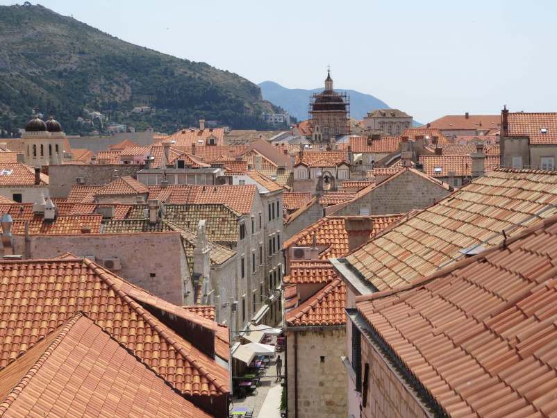 Von hier kann man auch quer über die Stadt mit ihren vielen roten Ziegeldächern sehen, bis zur Mauer auf der anderen Seite. Der höchste Punkt dort ist das Minceta-Fort.