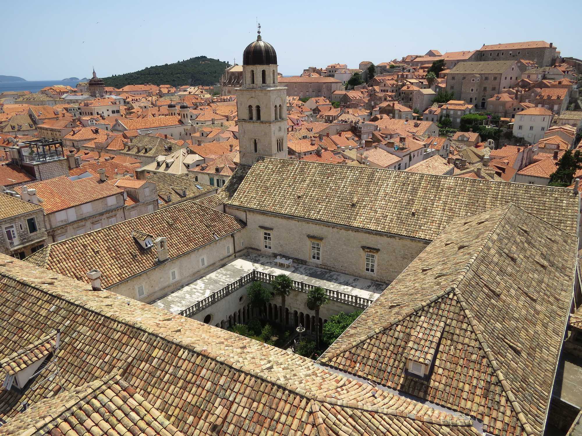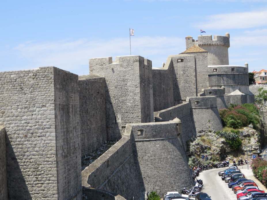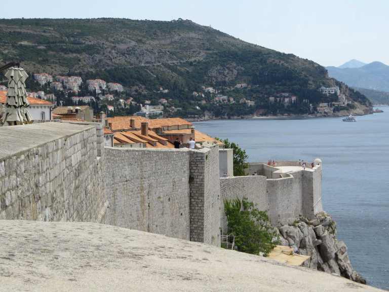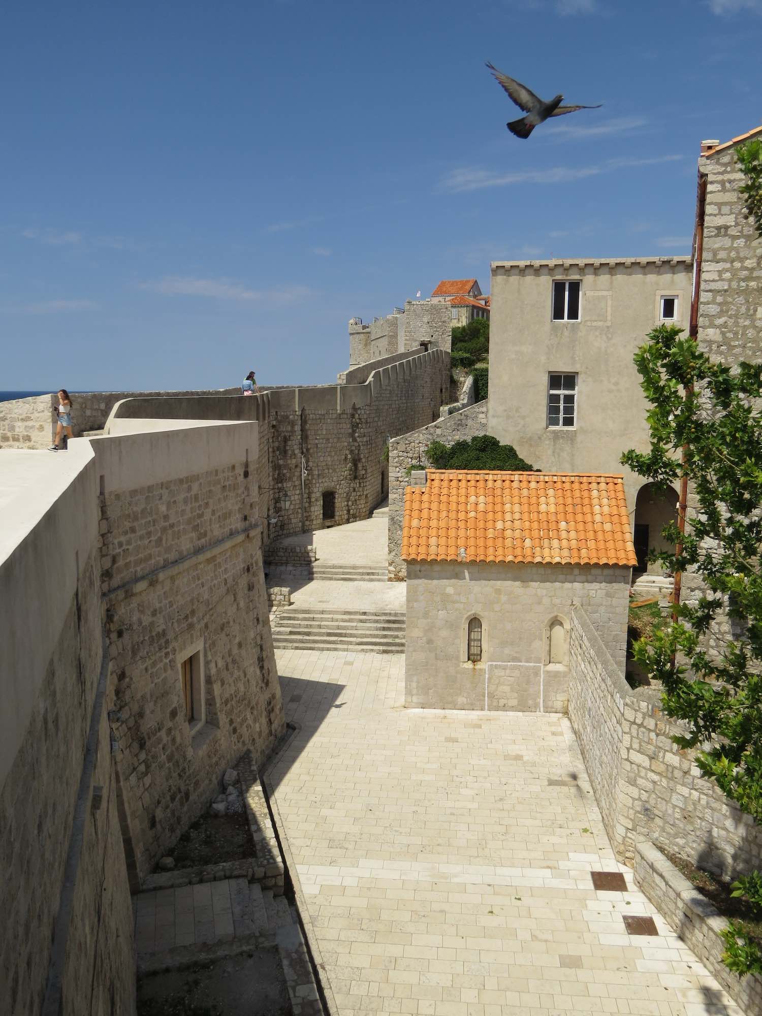 Die Altstadt von Dubrovnik ist vollständig von einer Stadtmauer umgeben, auf der man die Altstadt auch vollständig zu Fuß umrunden kann. Der (kostenpflichtige) Aufstieg ist hinter dem Pile-Tor beim Franziskaner Kloster. So hat man nach dem Aufstieg auch gleich einen Blick auf die Placa-Stradun.