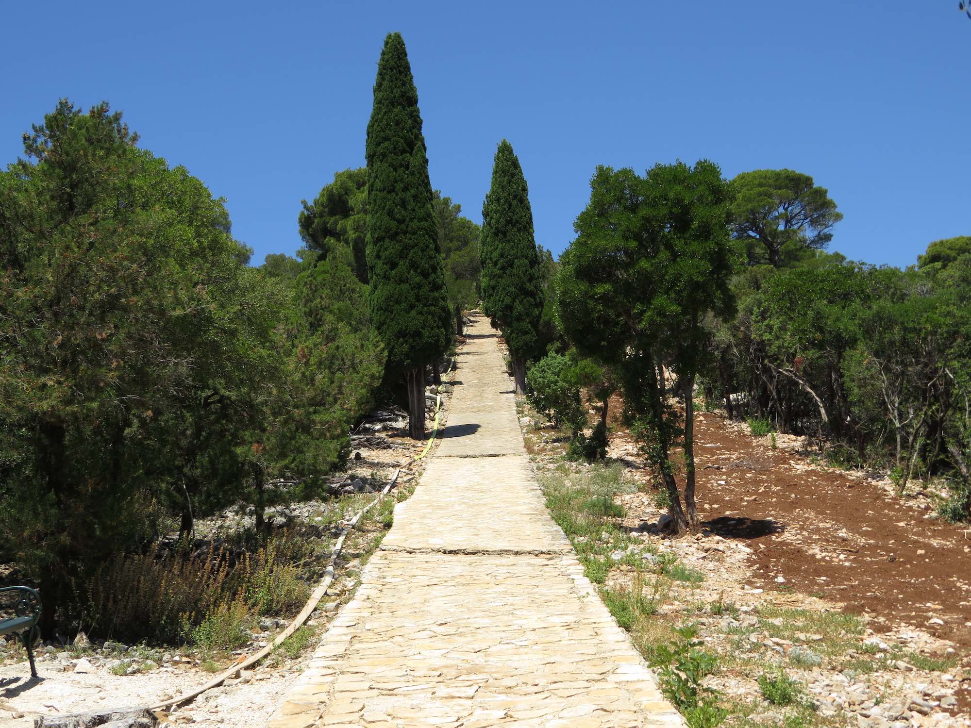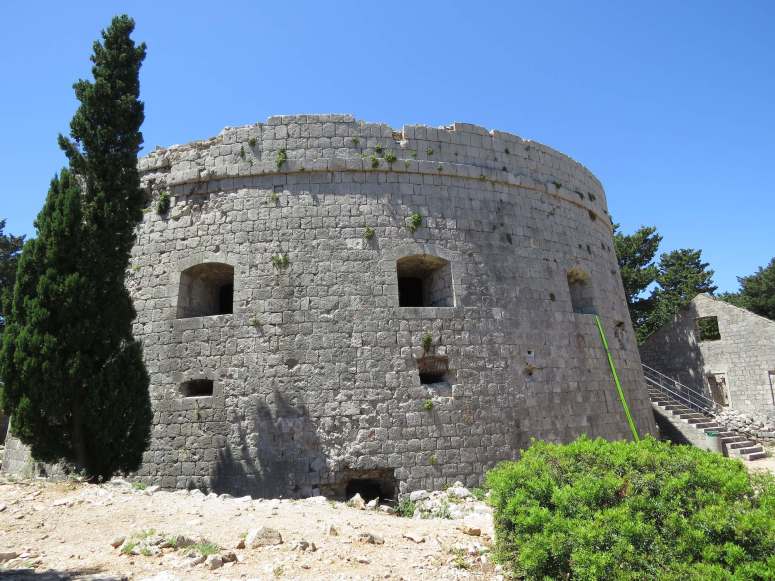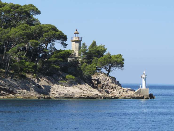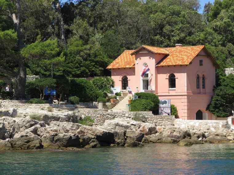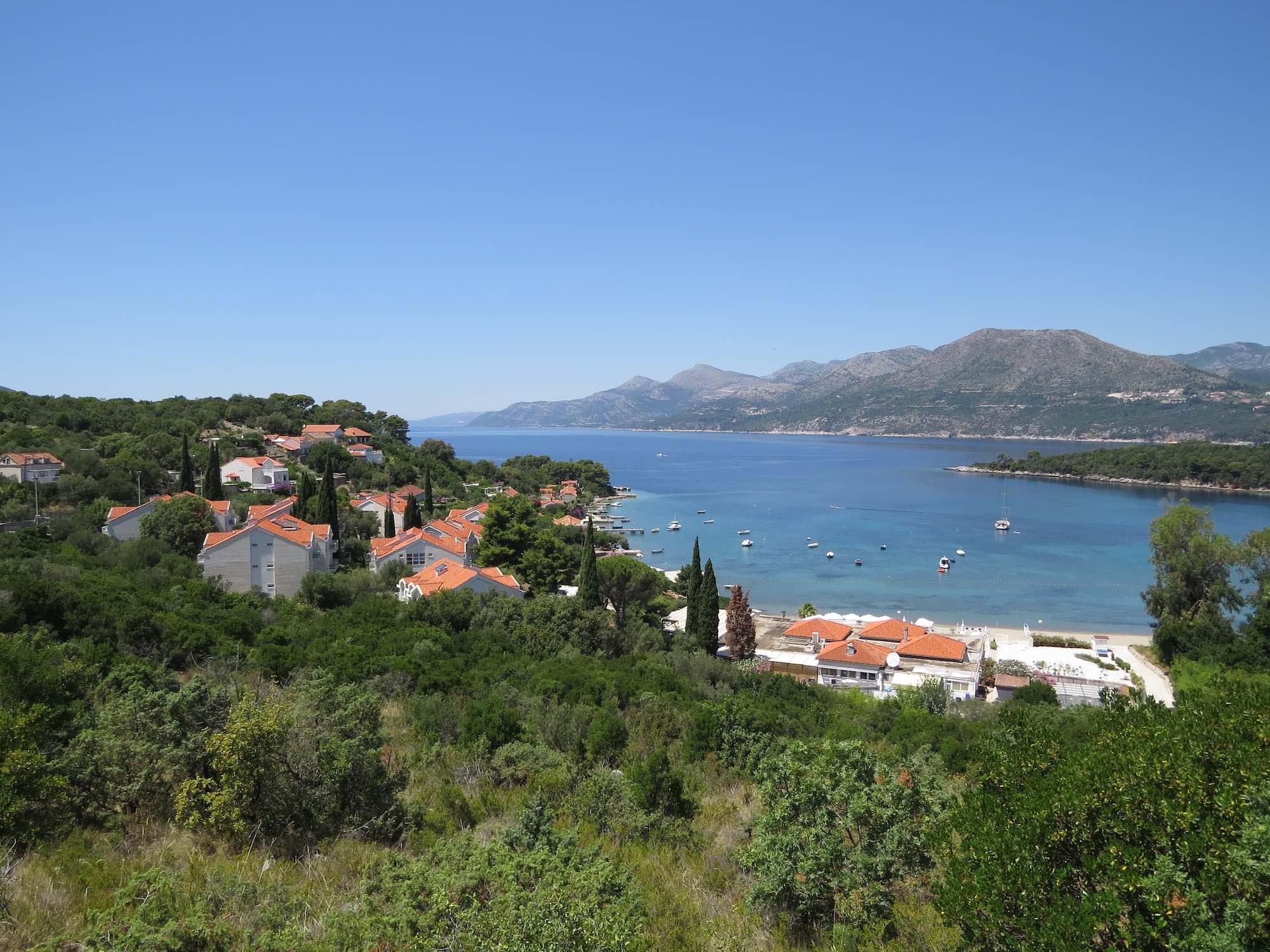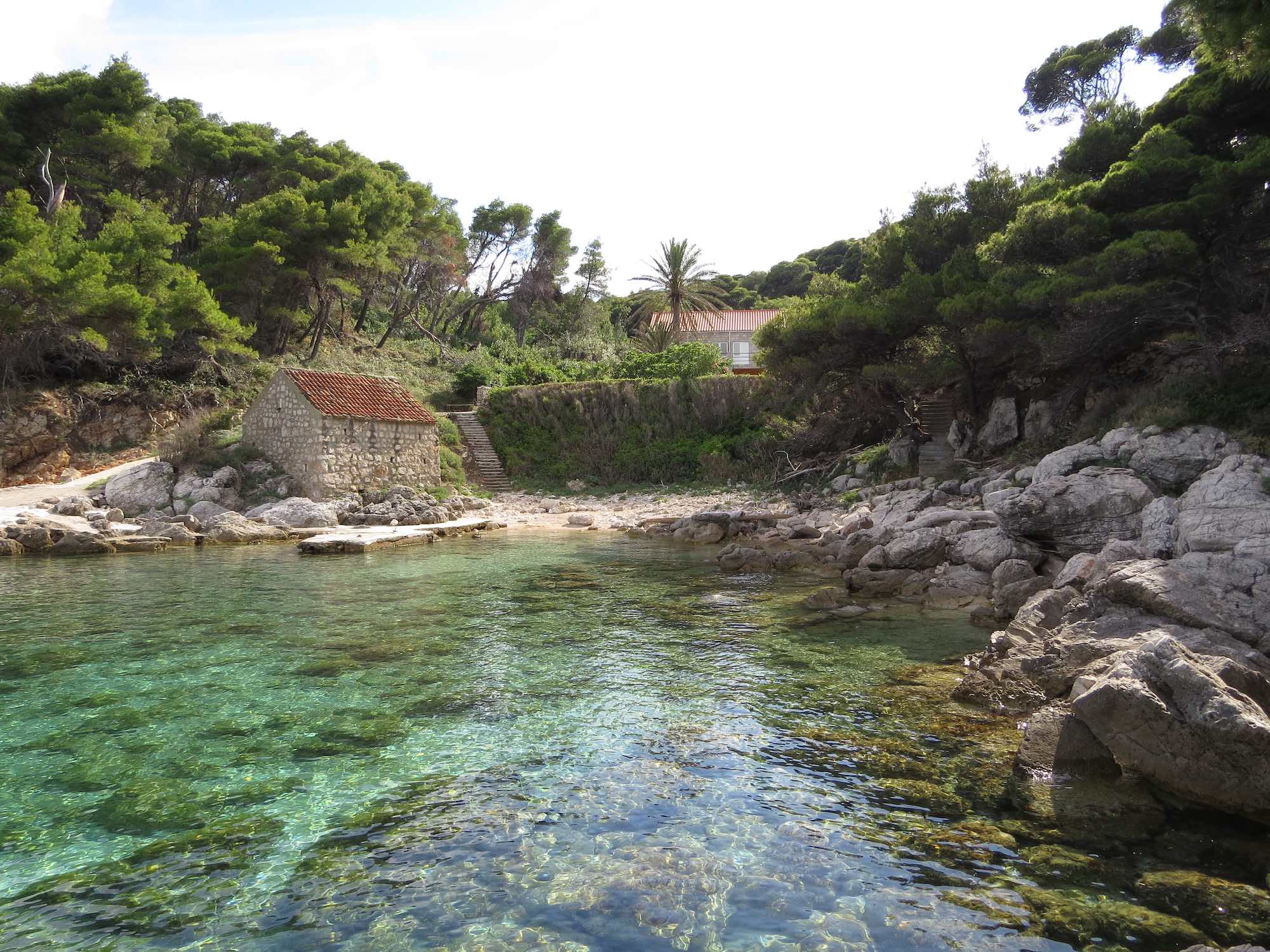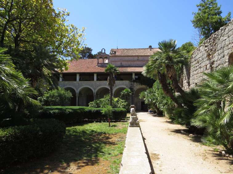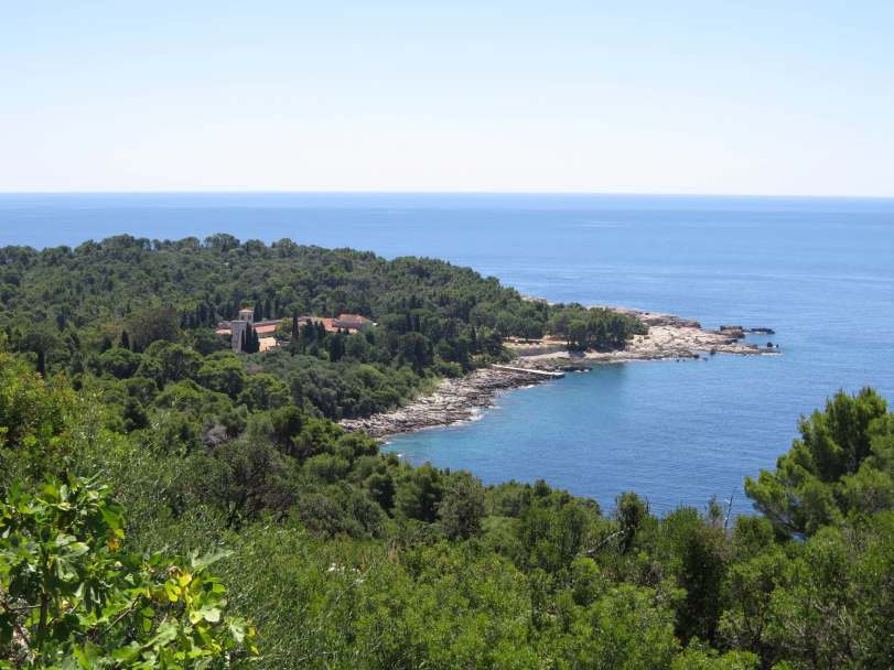 Die aus dem Wald herausschauende Häuserformation ist der Rest eines Benediktiner Klosters. Es wurde, wie so vieles in und bei Dubrovnik, vom Erdbeben im Jahre 1667 total zerstört, dann später im 19. Jahrhundert von Erzherzog Maximilian von Habsburg teilweise als Schloss als Sommersitz wieder aufgebaut. Einiges erinnert aber noch an ein Kloster.