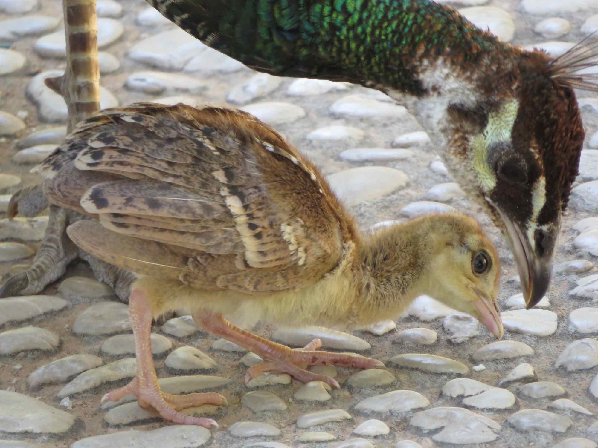 Die Insel ist klein und lädt zum entspannen ein. Eine Besonderheit sind die dort lebenden Pfaue, hier mit Nachwuchs.