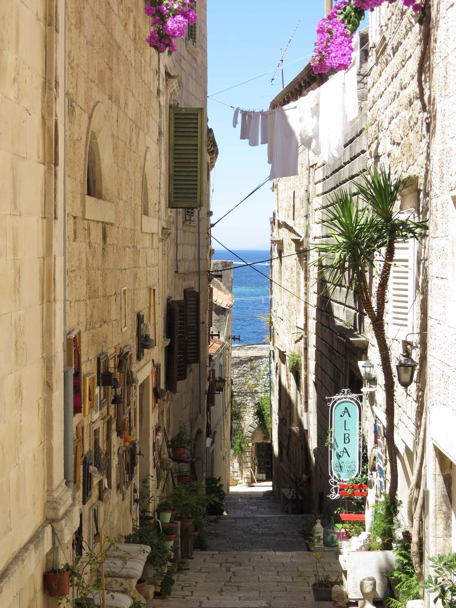 Am ersten Tag waren wir am Strand Cava, ganz in der Nähe unseres Hotels, und anschließend in der Altstadt. Durch Corona war die sonst überfüllte Altstadt fast menschenleer. Das Foto zeigt die Gasse „Od Puca“.