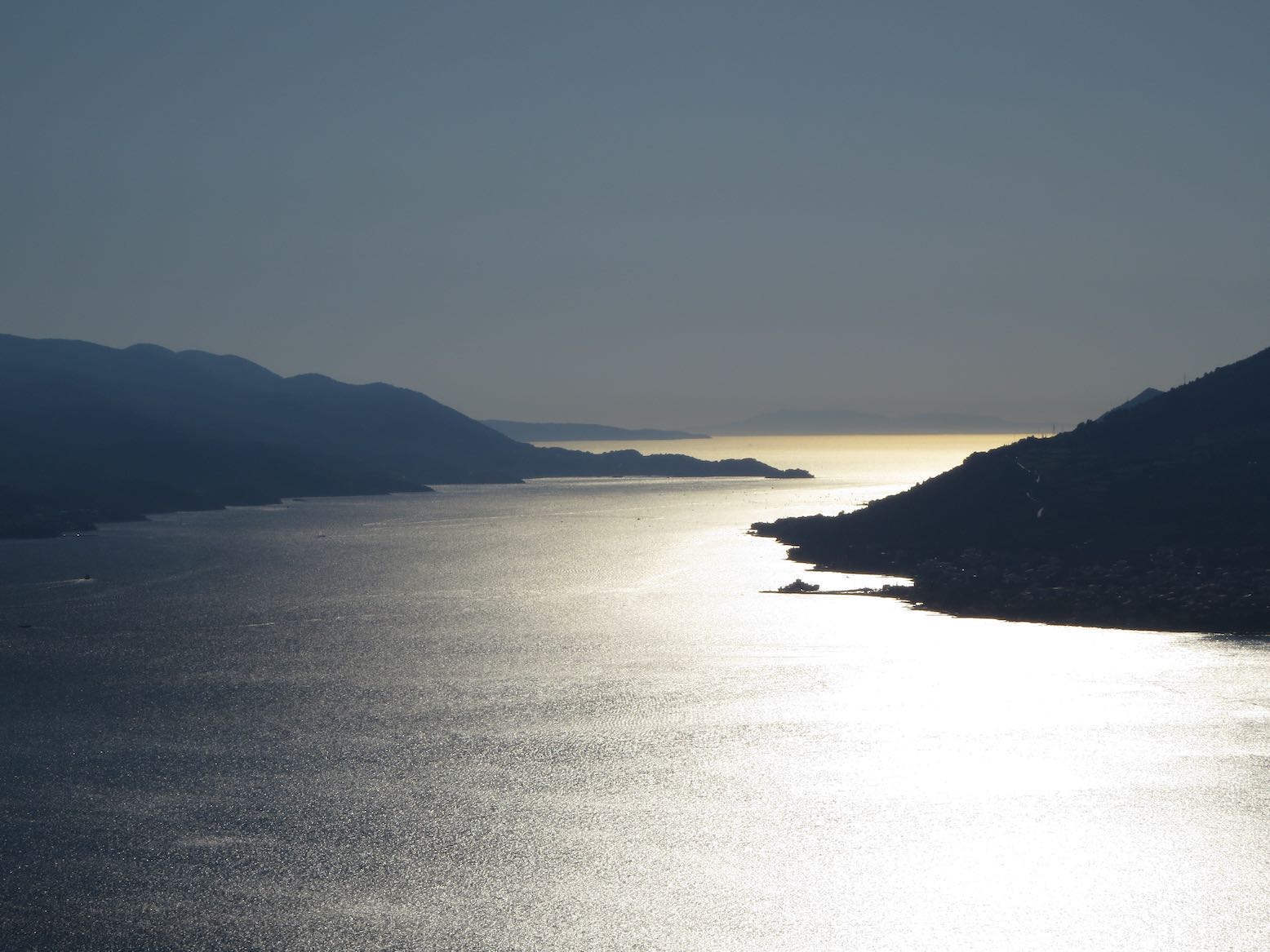 Von Kolocep gibt es auch gute Ausblicke auf die Schrägseilbrücke über die Mündung der Bucht der Ombla, mit der Insel Daksa im Vordergrund. Von der Schrägseilbrücke aus reicht die Bucht etwa 4,5km ins Landesinnere und dort entspringt die Ombla, mit einer Wassermenge von durchschnittlich etwa 24 m³/s. Das in Kroatien dominante Karstgestein macht es möglich, dass der Fluss direkt mit dieser Wassermenge entspringt. Für weitere Informationen verweise ich auf den Wikipedia-Akrtikel zur Ombla.