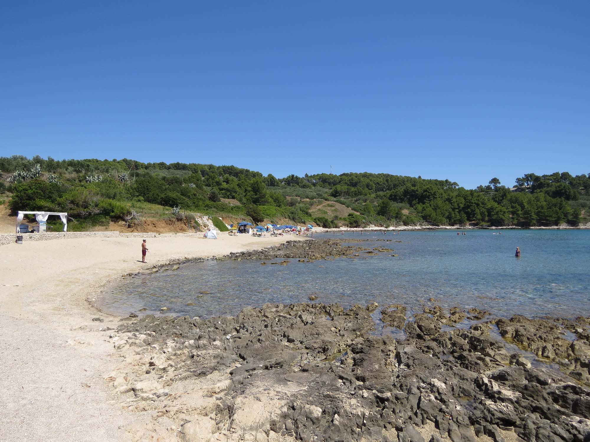 Von der Stadt Korcula sind wir dann noch zu dem Strand Vela Przina in der Gemeinde Lumbarda gefahren. Die Gemeinde liegt im äußersten Osten der Insel Korcula und ist nicht weit von der Stadt Korcula entfernt, vielleicht 20 Minuten mit dem Auto. Der Strand war groß, lag in einer großen Bucht, und war ein Sandstrand, was in Kroatien sehr selten ist. Er geht flach ins Wasser und ist daher für Kinder gut geeignet. Aber ansonsten war er auch keine Schönheit, obwohl er als einer der schönsten Strände Korculas gepriesen wird.