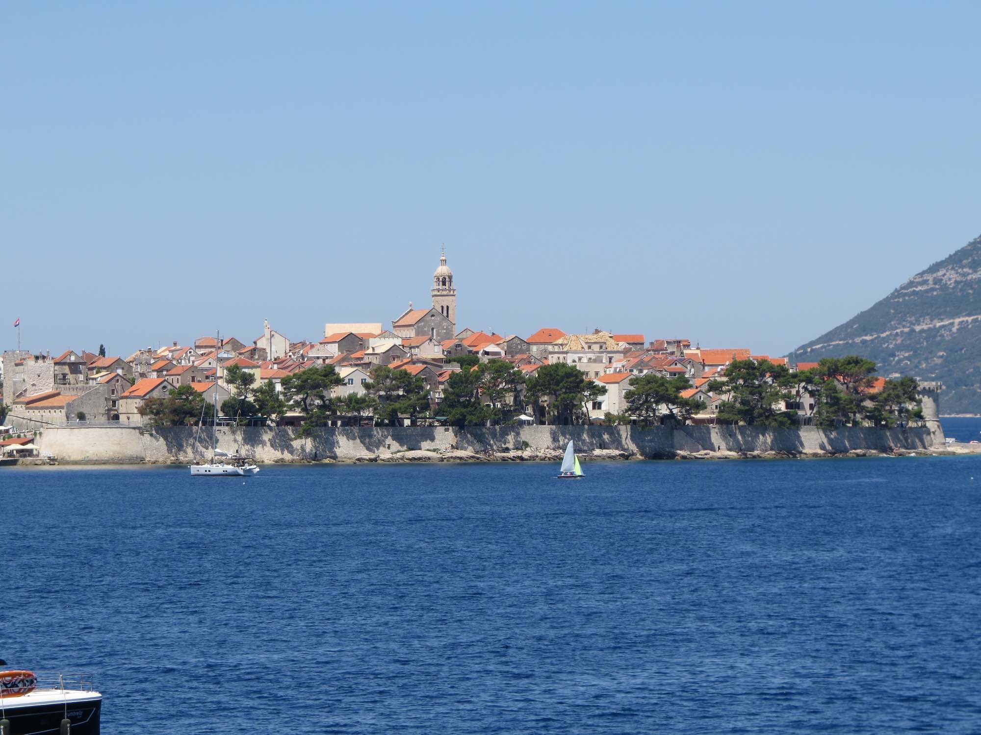 Von der Fähre hatte man auch einen guten Blick auf die Stadt Korcula. Der Fährhafen war ein paar Kilometer von Korcula entfernt und die Fähre ist in etwa einem km Entfernung an der Stadt vorbeigefahren.