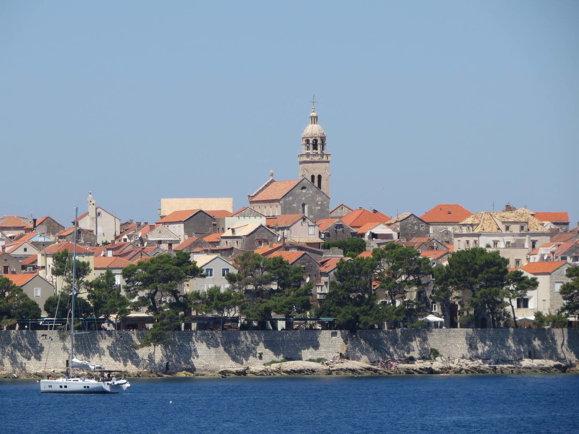 Korcula ragt wie eine Halbinsel ins Meer und ist seeseitig von einer Mauer umgeben, was ihr den Namen „Klein-Dubrovnik“ eingebracht hat.