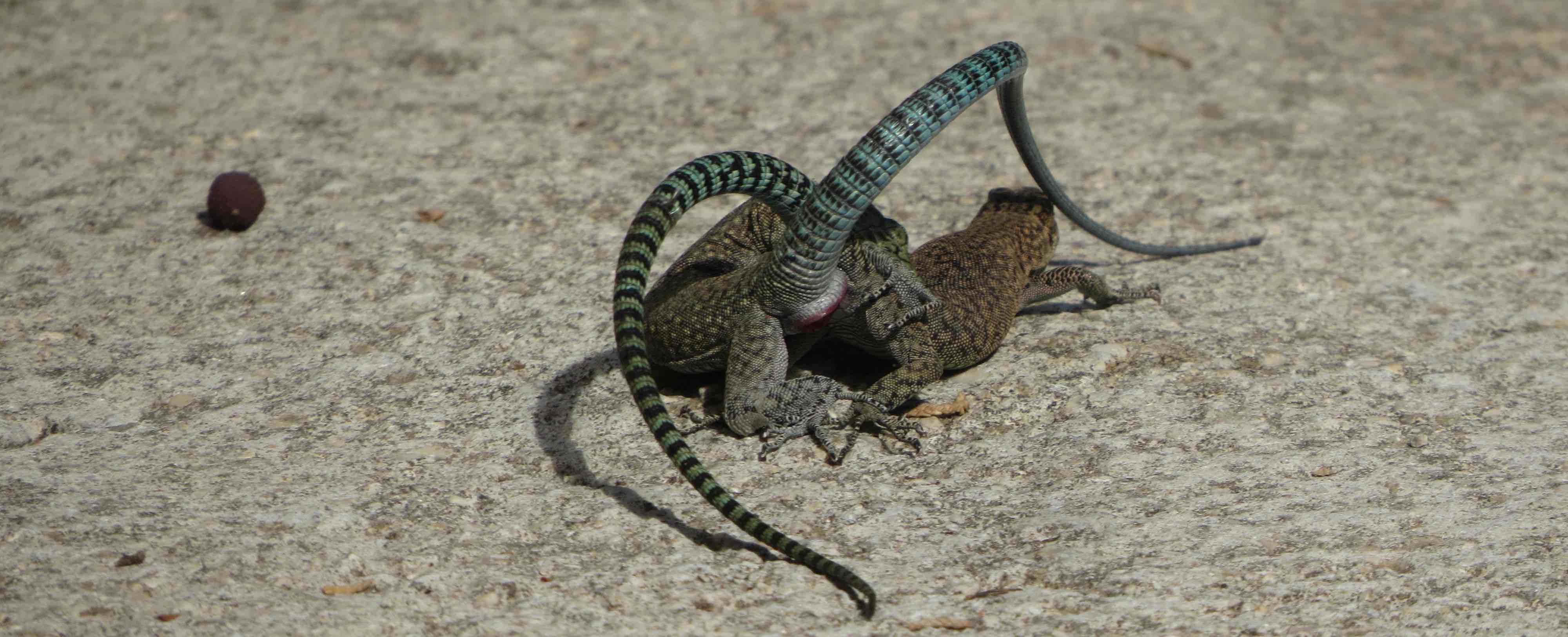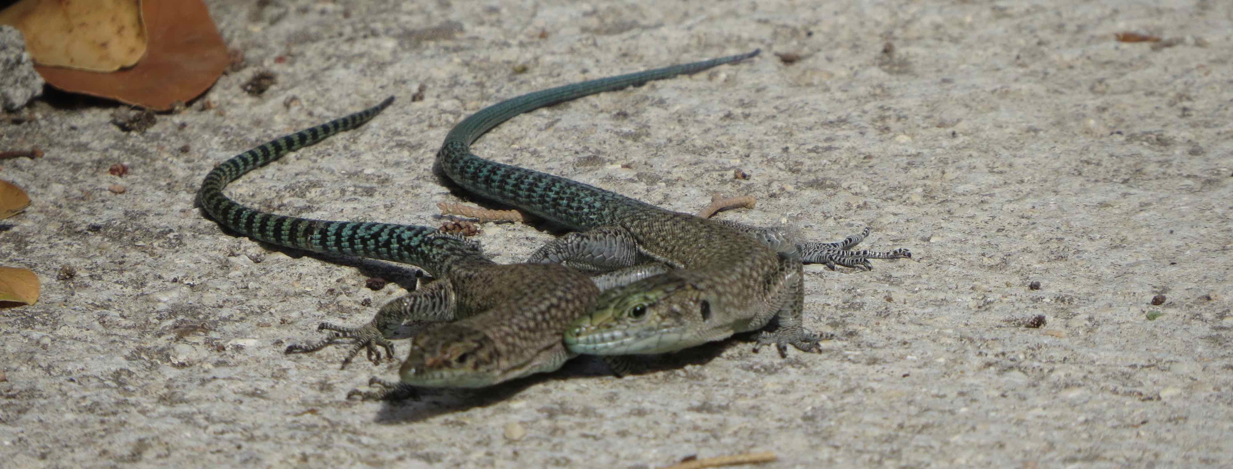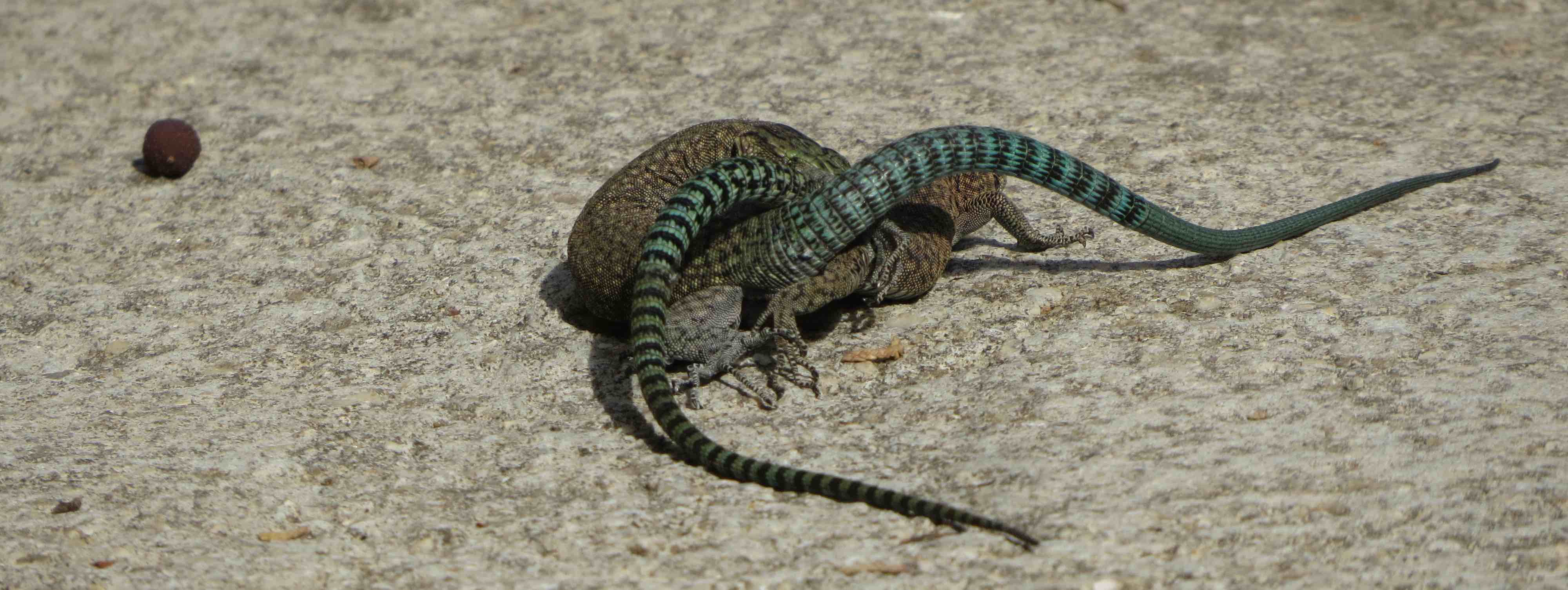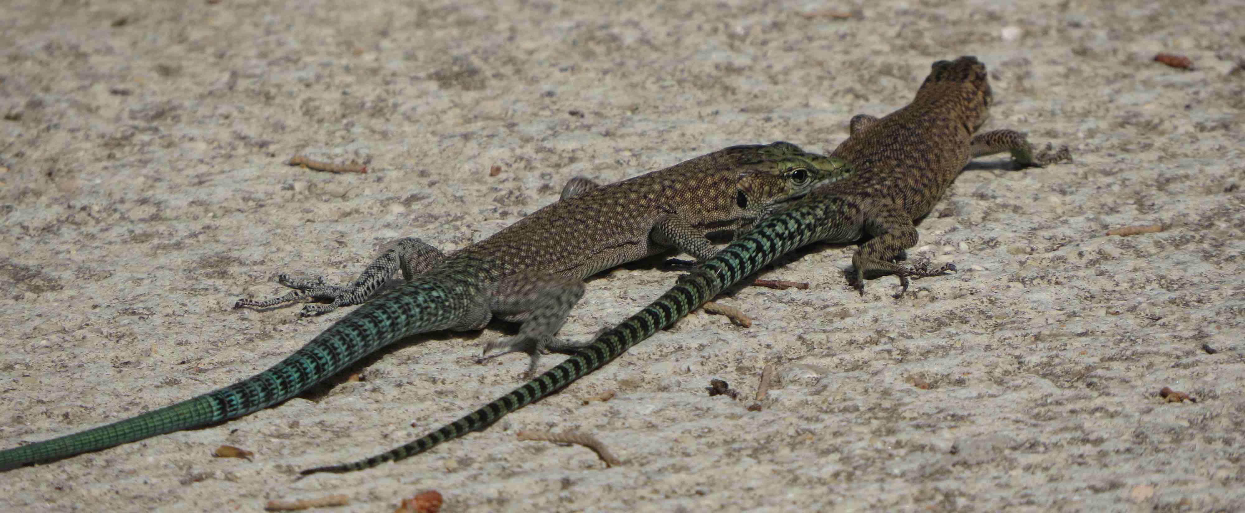 Unterwegs sind mir noch diese beiden Eidechsen begegnet, die mir die Frage beantwortet haben, wie das mit den Baby-Eidechsen funktioniert: