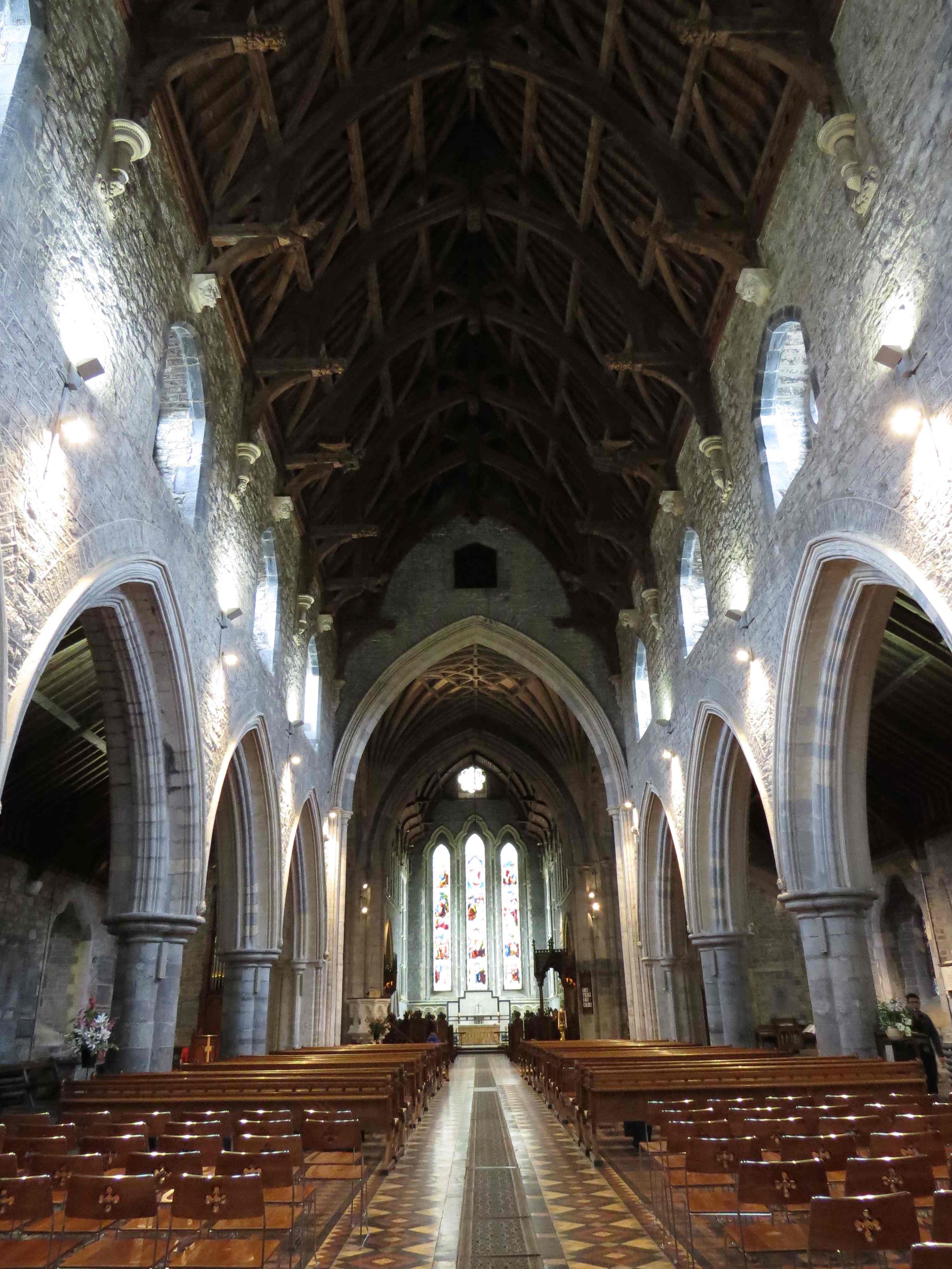 Besonders möchte ich auf die aufwändig gestaltete Holzdecke hinweisen. Der sehr helle Stein im Innenraum ist eher ungewöhnlich für Irland.