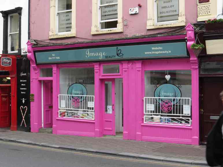 das, typisch für Irland auch die gällische Variante hat, häufig, wie hier, auch als dominante Variante. Es gibt aber nicht nur Pubs und bunt, sondern auch Bücher.