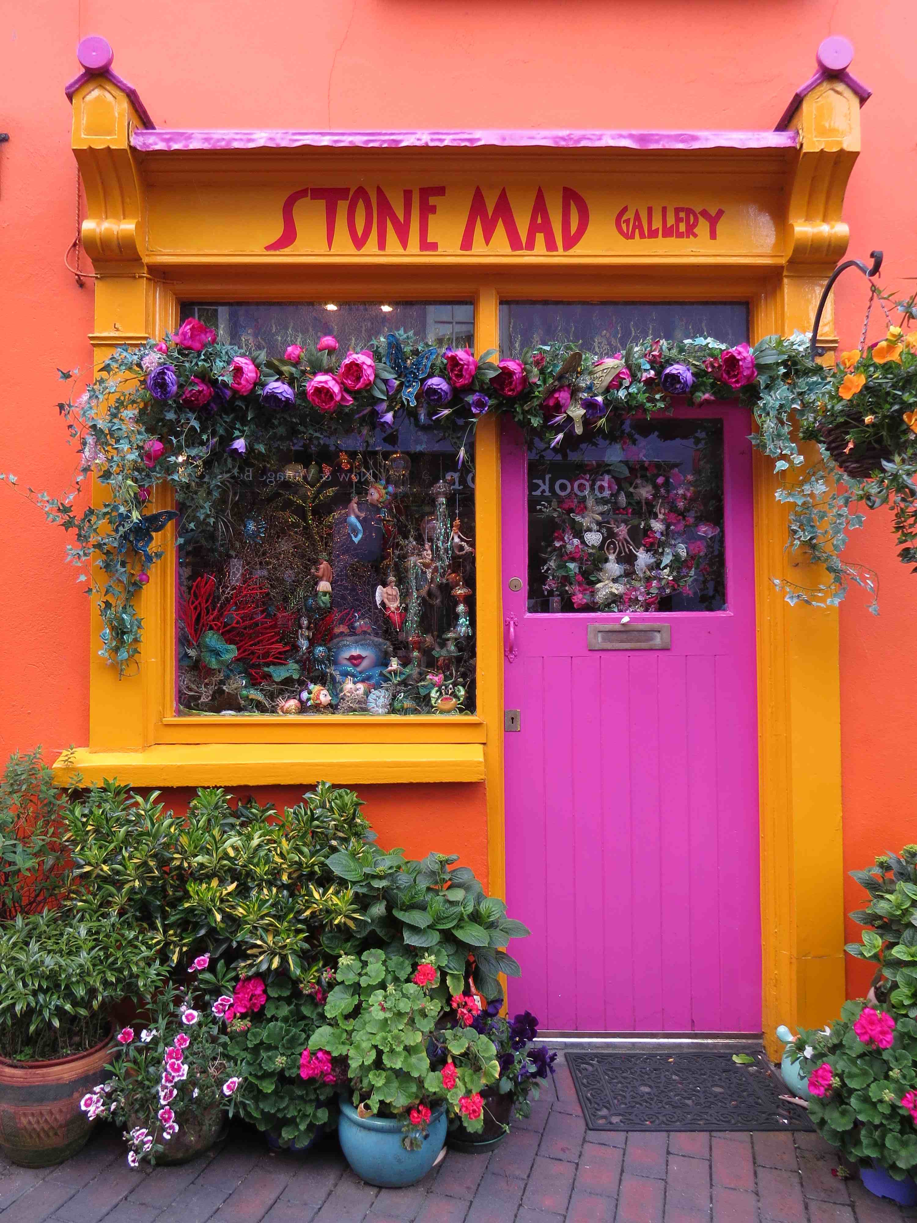 Manche Häuser haben auch die in Irland verbreiteten Steine verbaut, zumindest so verwendet, dass sie die Fassade prägen, wie dieser Buchladen, wobei wir die Bibliotherapie nicht getestet haben.