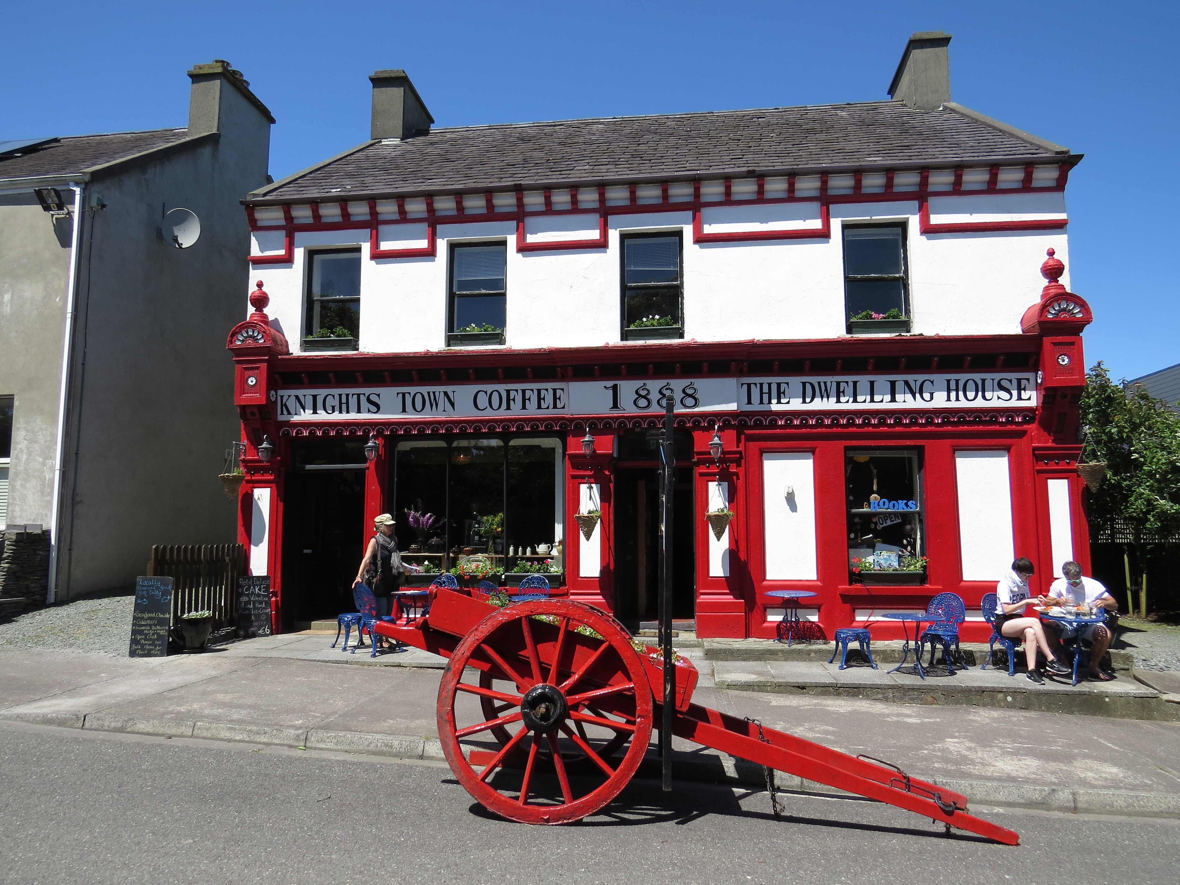 Es wird nun als Hotel genutzt, von Leuten, die definitiv nicht mehr wissen, wohin mit ihrem Geld. Ein weiteres Bsp. dafür, dass ein Ausländer ein tolles Anwesen in Irland erworben hat, wovon die Iren nichts haben. Trotz oder wegen dieser Dekadenz war es aber ein nettes Plätzchen und wir haben dann außerhalb der Schlossanlage/Hotelanlage eine nette Pause bei einem Cafe mit kleinem Souvenir-Shop gemacht. Das war sehr nett, mit eigenem Parkplatz für Golf-Caddies, damit die Golfer des Hotels auch, nach Überqueren der Schlossbrücke,