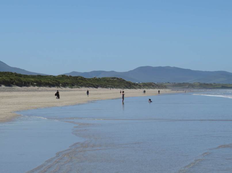 Jedenfalls haben wir zuerst einen Strand bei Glenbeigh bzw. Rossbeigh angesteuert. Der Strand ist eine lange Landzunge, die sich in ein Inlet erstreckt, mit großen Dünen. Fast gegenüber, also auf der anderen Seite des Inlets, liegt der Strand „Inch“ auf der Dingle-Halbinsel, den wir aber nicht besucht haben.