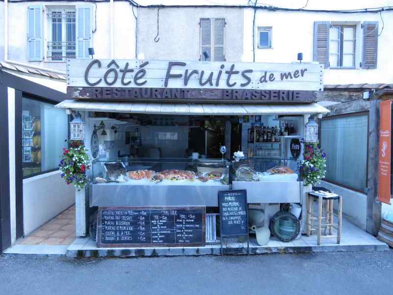 Bei einem kleinen Imbiss von je einem Gallet (salziger Crepe), der allerdings den ganzen Abend vorhielt, haben wir das Treiben im Hafen auf uns wirken lassen. Neben diesem ansprechenden Fischladen …