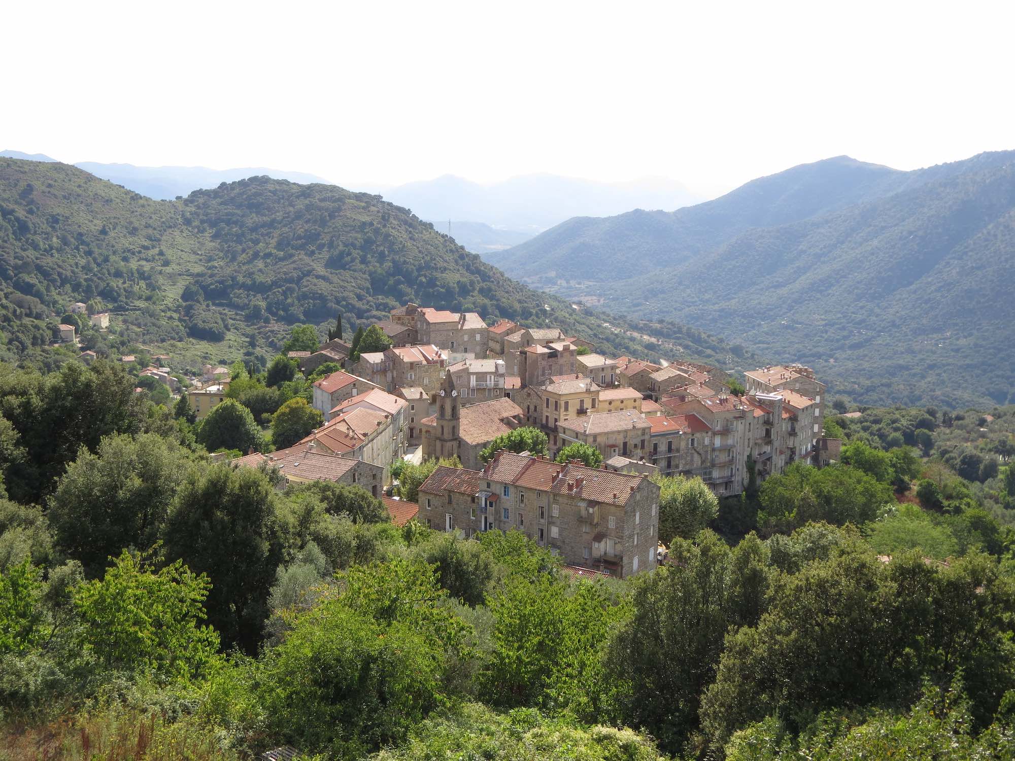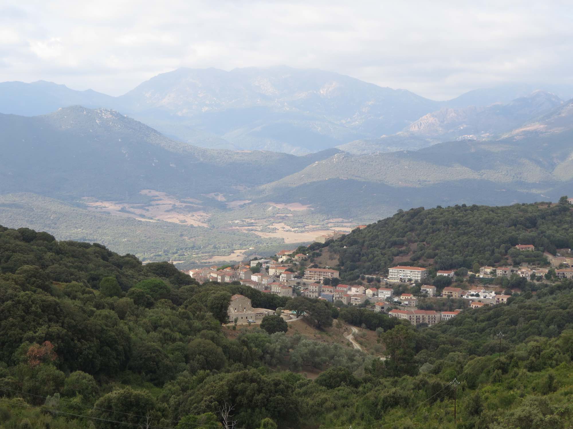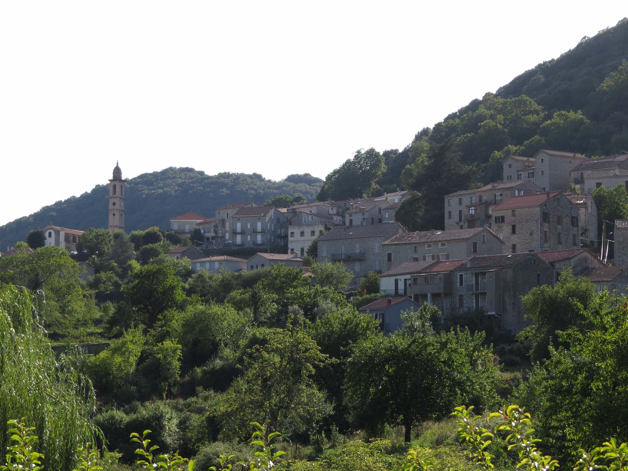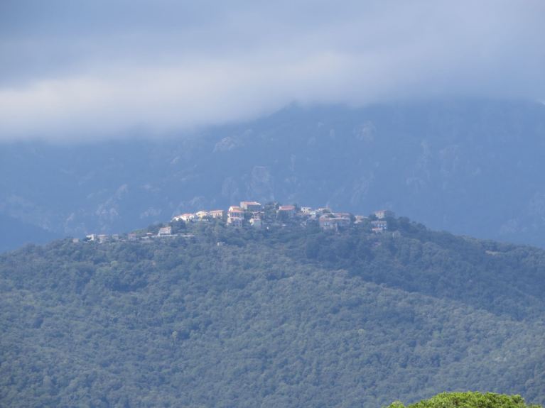 Heute war Abholtag für Vivien und Pascal, die für die zweite Woche nachgekommen sind. Wir haben dazu erst einen kleinen Strand nördlich von Porto-Vecchio besucht, er hieß“ Padulo Tortu“, und dann bin ich weiter nach Bastia gefahren, um die beiden abzuholen. Unterwegs ist mir noch das folgende Bergdorf aufgefallen: