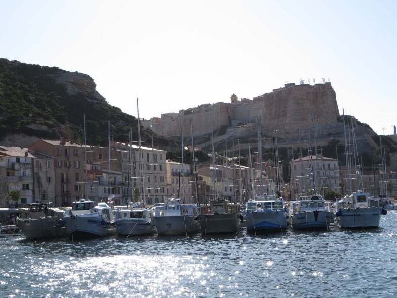 Wir haben den Tag aber wieder entspannt begonnen, mit morgendlichem Schwimmen und ohne uns Zeitdruck zu machen. Und so standen wir dann mit vielen weiteren Deppen wenigstens eine halbe Stunde im Stau, der sich nach Bonifacio schlängelte. Unsere Befürchtungen, dass wir das Auto gar nicht mehr abstellen könnten, haben sich zum Glück nicht bestätigt.