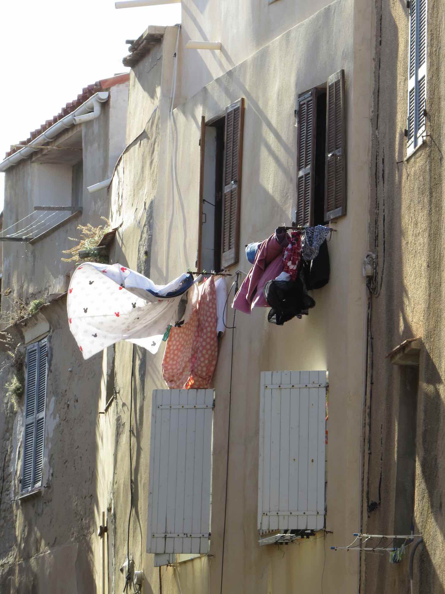 … in denen auch die Wäsche zum Trocknen vor die Fenster gehängt wird.