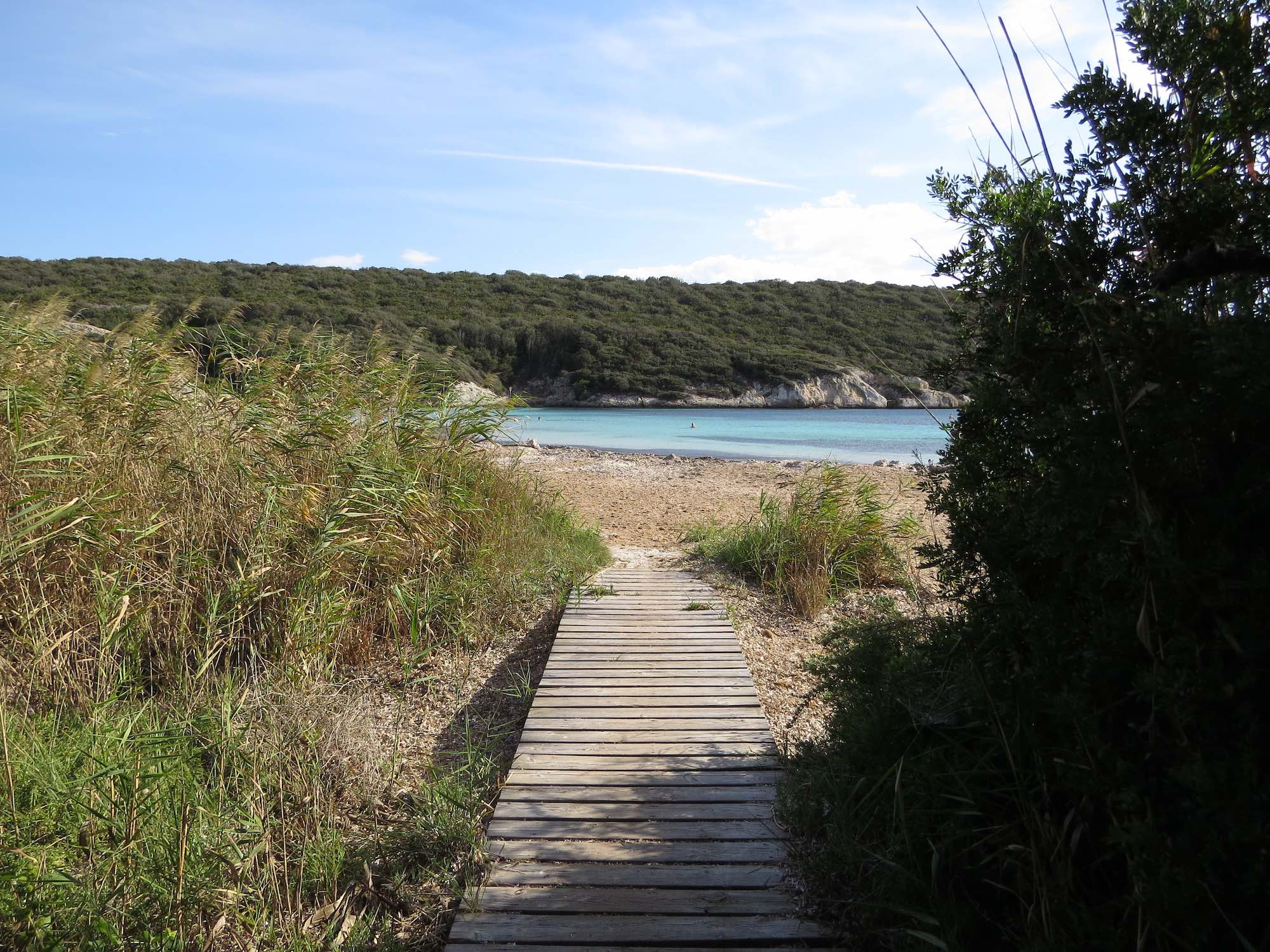 Nach dem Essen haben wir uns aber doch noch aufgerafft und sind zum Strand gegangen, im Naturpark „Rundinara“ (oder „Rondinara“, es scheint zwei Schreibweisen zu geben), 10 Minuten zu Fuß von unserem Haus: