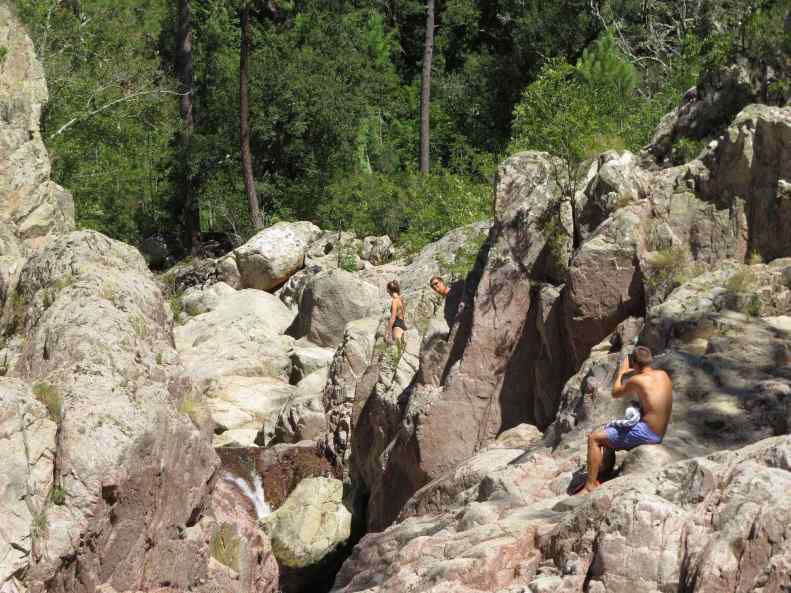 Und dann war auch bald der erste Gumpen erreicht, in den man auch vom Felsen hineinspringen konnte: