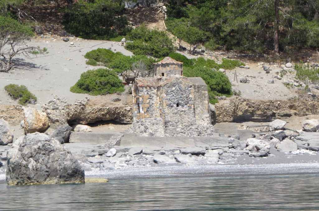 Auf halbem Wege zwischen Marmara Beach und Agia Roumeli ist diese Kirche in den Felsen gebaut. Es ging dann weiter entlang der unwirtlichen Küste, in der es noch ein paar Strandbuchten gab, wie die folgende.
