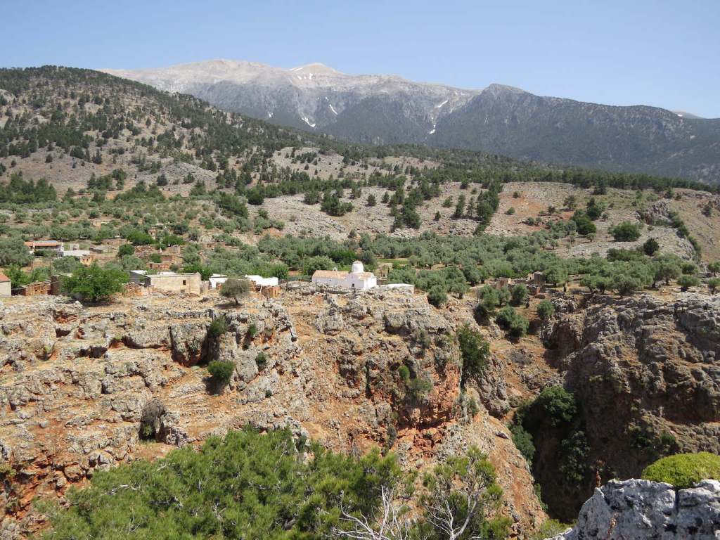 Auf der anderen Seite der Brücke ist, neben einem Kiosk für Touris, das verlassene Dorf Aradena. Es soll nach einer Vandetta in den 50er Jahren aufgegeben worden sein. Von zwei Clans haben wohl Kinder von Clan 1 einer Ziege des Clans 2 eine Glocke geklaut. Bewaffnete Männer des Clans 2 sind dann bei Clan 1 vorstellig geworden. Jedenfalls haben die Überlebenden sich dann geeinigt, das Gebiet zu verlassen.