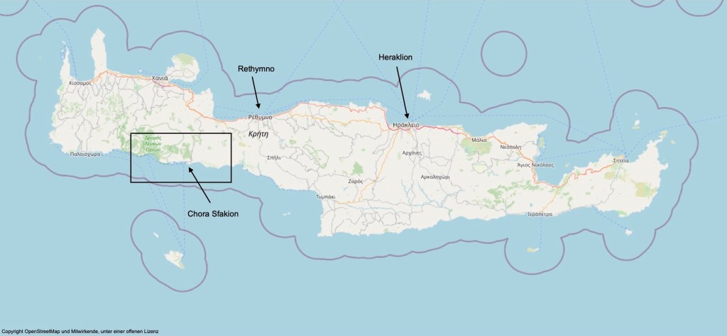 Ende Mai 2022 waren wir etwas länger als eine Woche auf Kreta. Im Jahre 2015 waren wir bereits einmal auf Kreta, damals in der Stadt Hania. Diesmal haben wir unser Domizil in Chora Sfakion gewählt, das die Einheimischen wohl einfach nur Sfakion nennen.