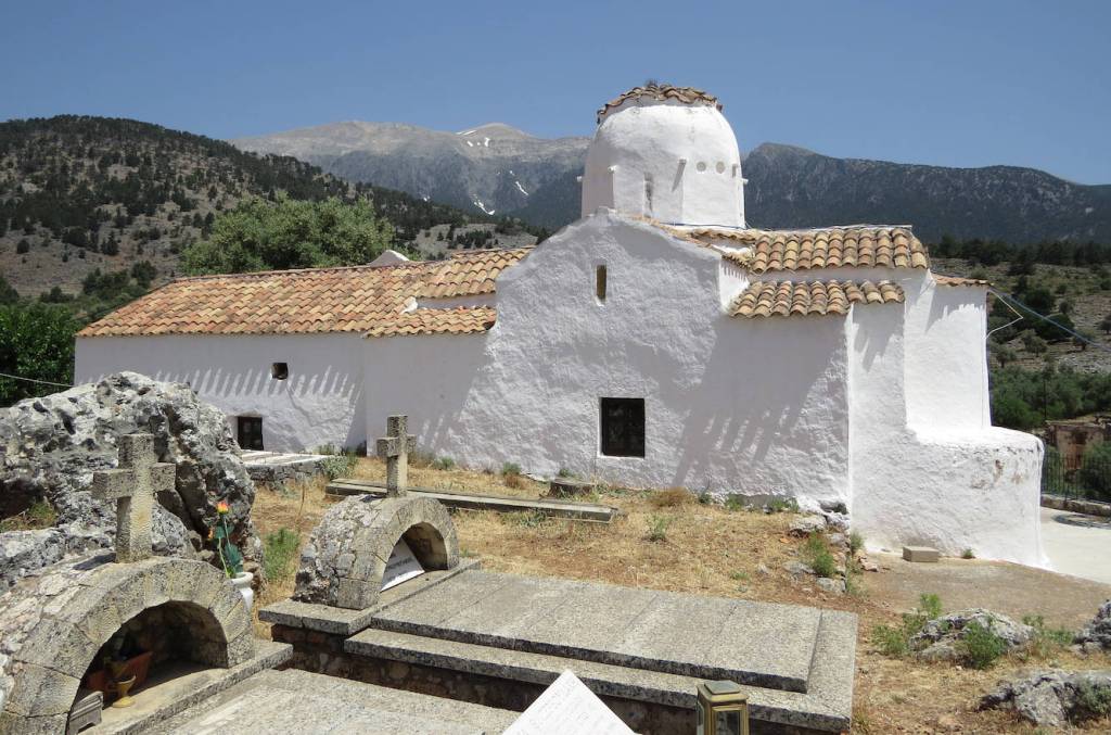 Auch das kleine Kirchlein scheint in Takt zu sein, mit Blick auf die Lefka Ori …