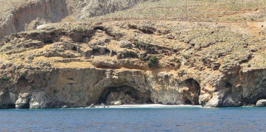Von Lingas Beach, der etwa 1km westlich von Chora Sfakion liegt, ging es Richtung Osten, zunächst vorbei an einer Steilküste, mit Höhlen, in die man auch hineinfahren konnte: