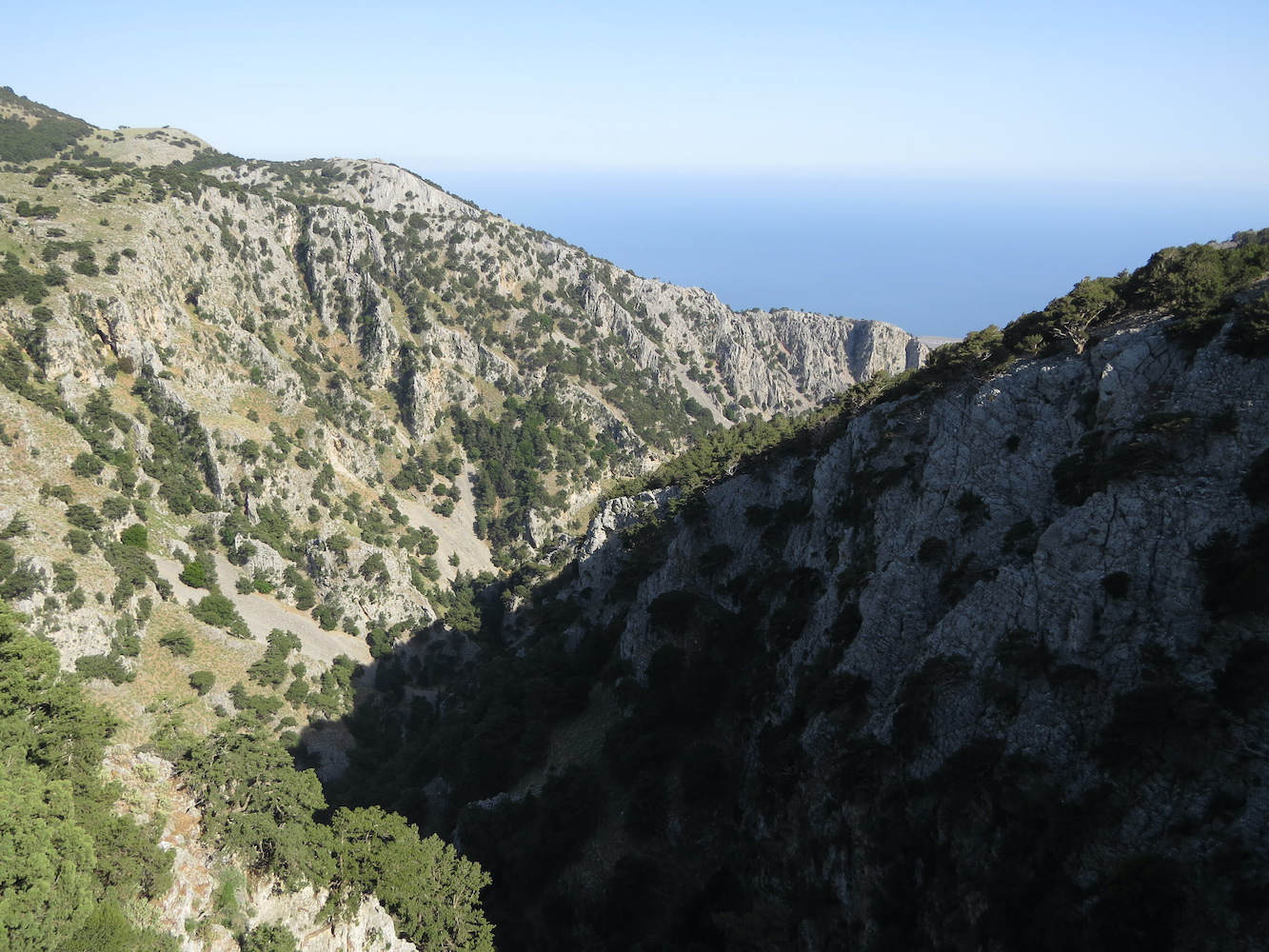Dabei geht es an der nicht ganz so berühmten Imbros-Schlucht vorbei und auf einer Art Pass liegt sie unter einem mit Blick auf das Lybische Meer: