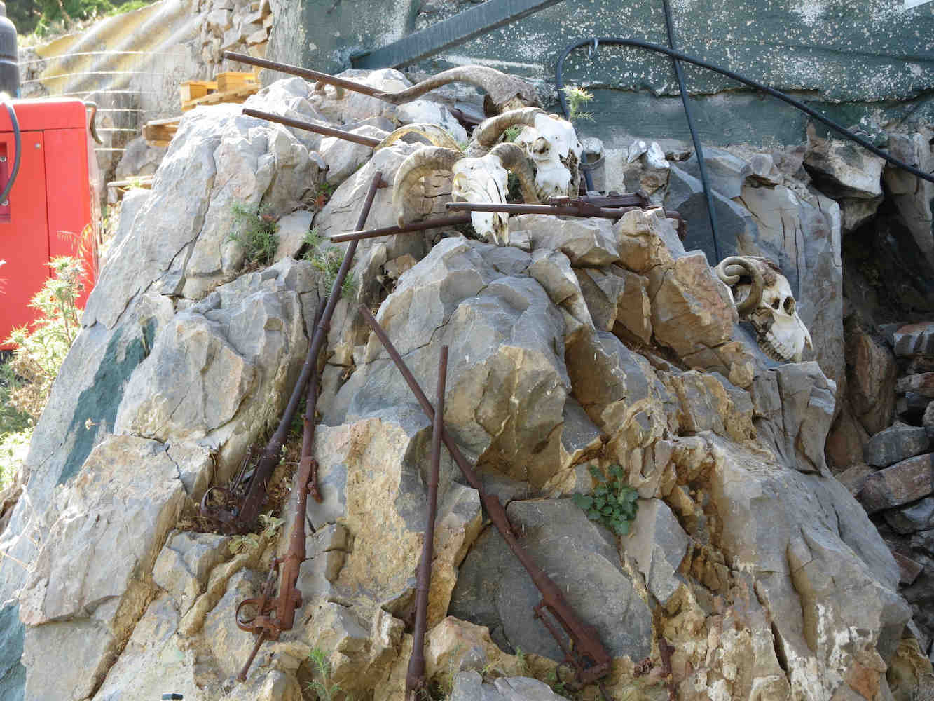 Etwas skurriler mutete da die Sammlung verrosteter Gewehre mit Ziegenschädeln an.