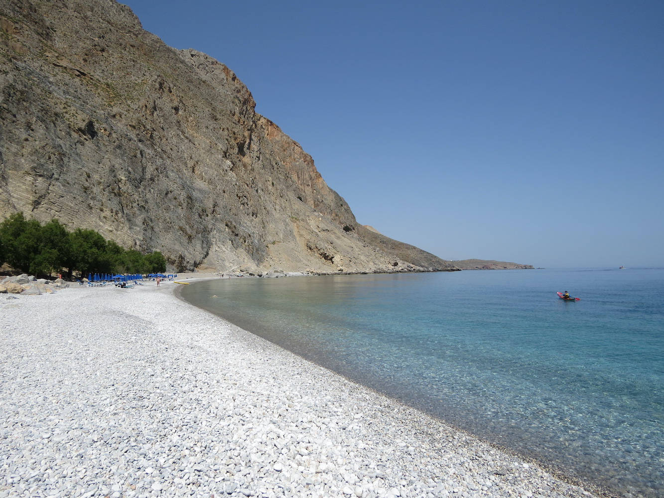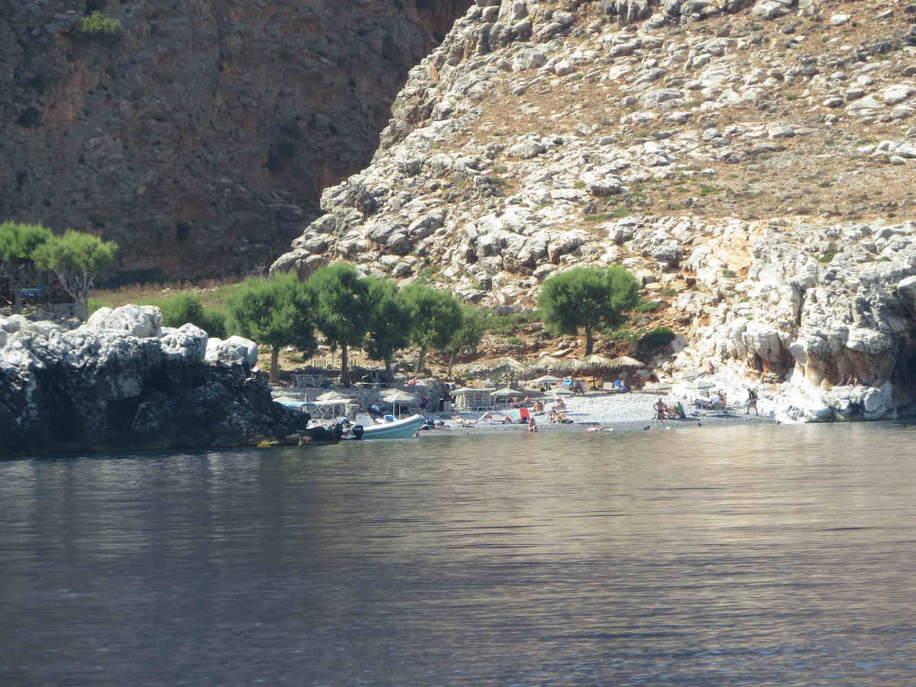 Direkt am Ausgang der Aradena-Schlucht liegt der Marmara Beach, den diese stark herangezoomte Aufnahme zeigt.