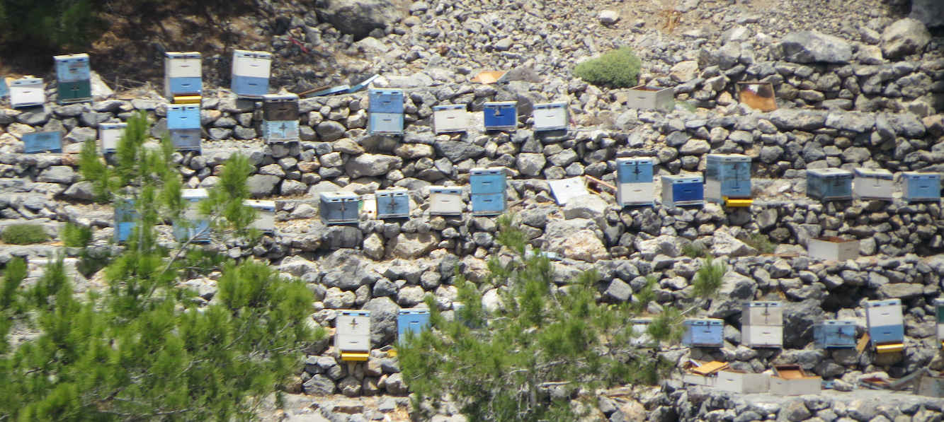Zoomt man den linken Teil der Bucht heran, entdeckt man Bienenkörbe. Einen Imker hätte man an dieser kargen und unzugänglichen Küste nicht erwartet.