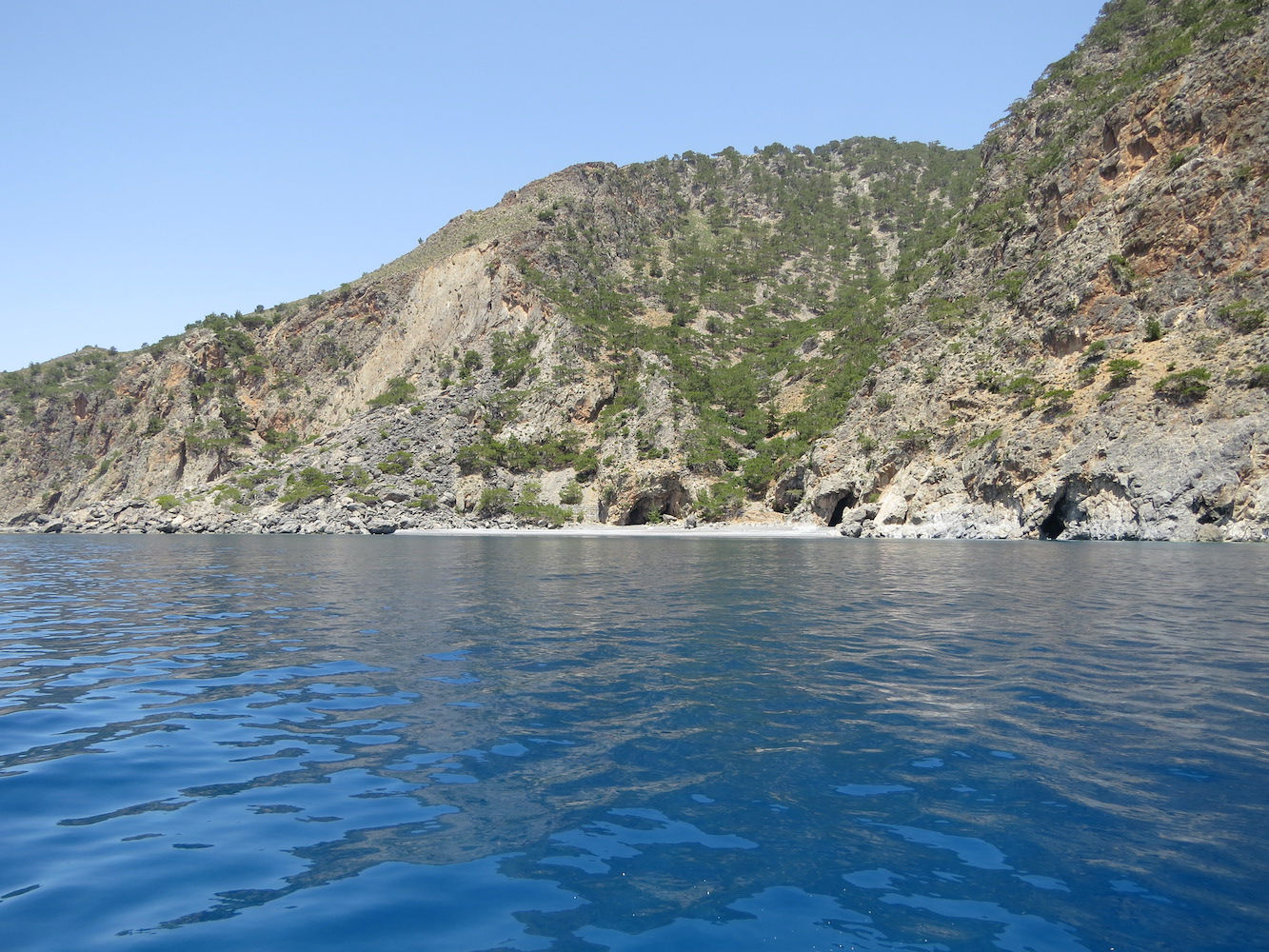 Von Lingas Beach, der etwa 1km westlich von Chora Sfakion liegt, ging es Richtung Osten, zunächst vorbei an einer Steilküste, mit Höhlen, in die man auch hineinfahren konnte: