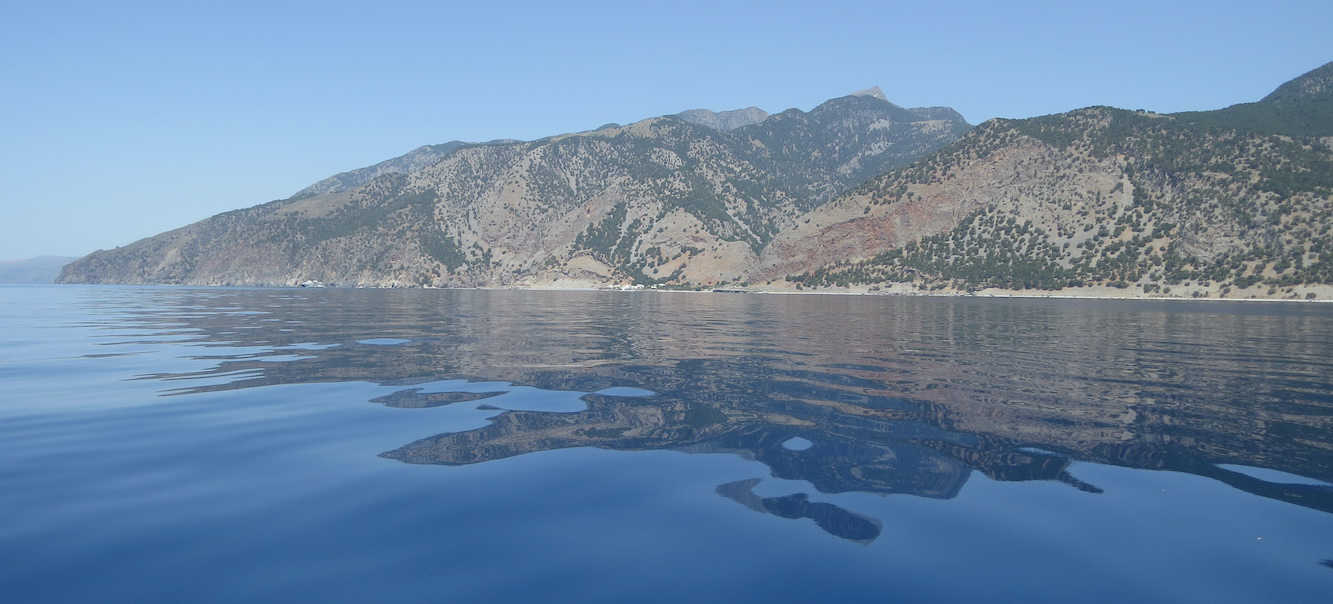 [27.5.2022] Bootstour entlang der Küste Richtung Westen, mit einem gemieteten Boot, bis zum abgelegenen Domata Strand.