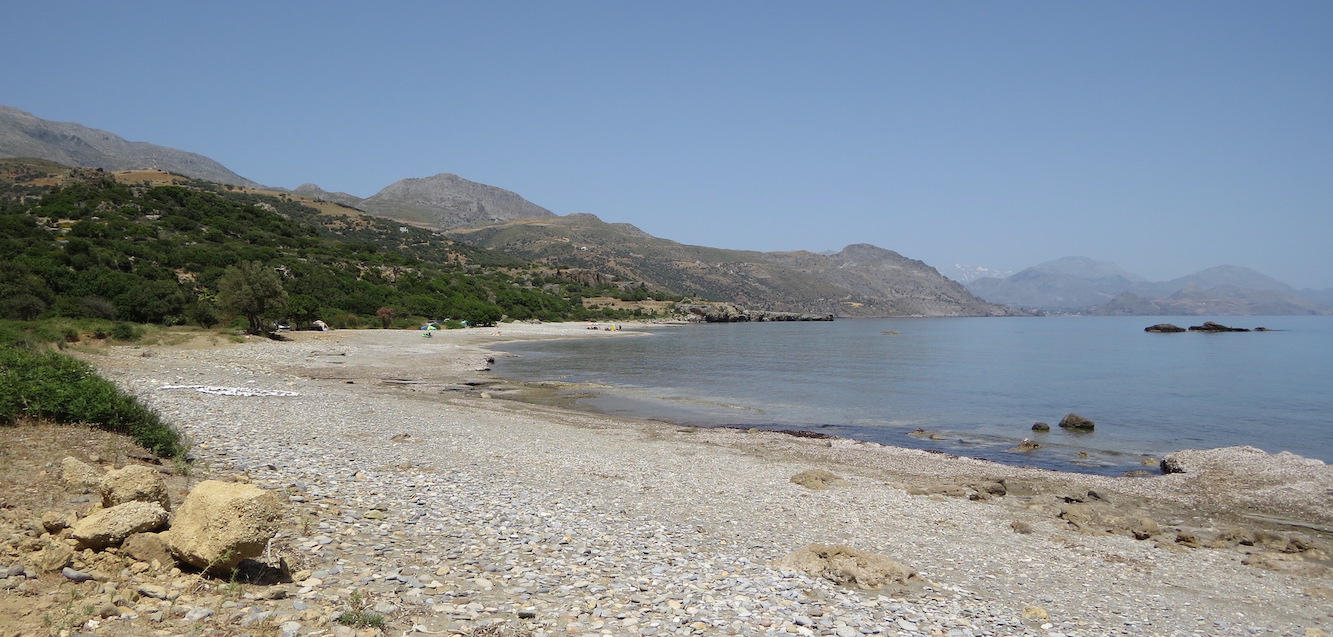 Auch dieser Strand ist ein Kiesstrand, wie viele Strände im Süden von Kreta, und auch hier strömt Süßwasser unterirdisch bzw. durch den Kiesboden ins Meer.