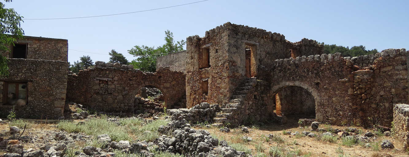 Auf der anderen Seite der Brücke ist, neben einem Kiosk für Touris, das verlassene Dorf Aradena. Es soll nach einer Vandetta in den 50er Jahren aufgegeben worden sein. Von zwei Clans haben wohl Kinder von Clan 1 einer Ziege des Clans 2 eine Glocke geklaut. Bewaffnete Männer des Clans 2 sind dann bei Clan 1 vorstellig geworden. Jedenfalls haben die Überlebenden sich dann geeinigt, das Gebiet zu verlassen.