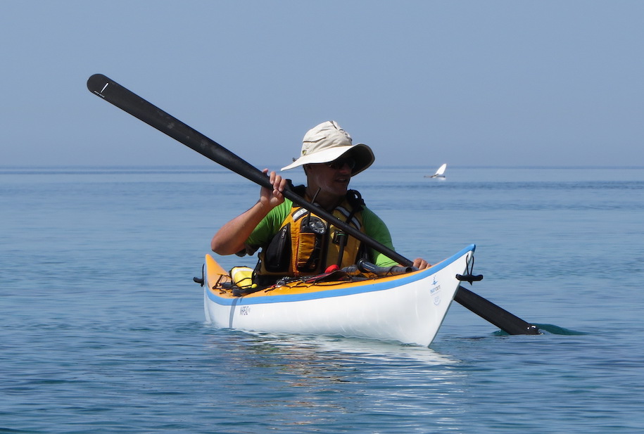 Besonders interessant fand ich, dass Stelios die Einerkajaks selbst entworfen und gebaut hat, aus GFK. Dazu hat er uns viele Geschichten zu den Problemen erzählt, die er lösen musste. Eine war, dass er nach vielen Versuchen eine gute Form und einen etablierten Prozess hatte, der Parameter wie Mischungsverhältnis für das Harz, Temperatur und Aushärtungszeiten beinhaltet, mit dem er mehrere Boote erfolgreich hergestellt hat. Dann hat er nur die Farbe geändert und es funktionierte schon nicht mehr.