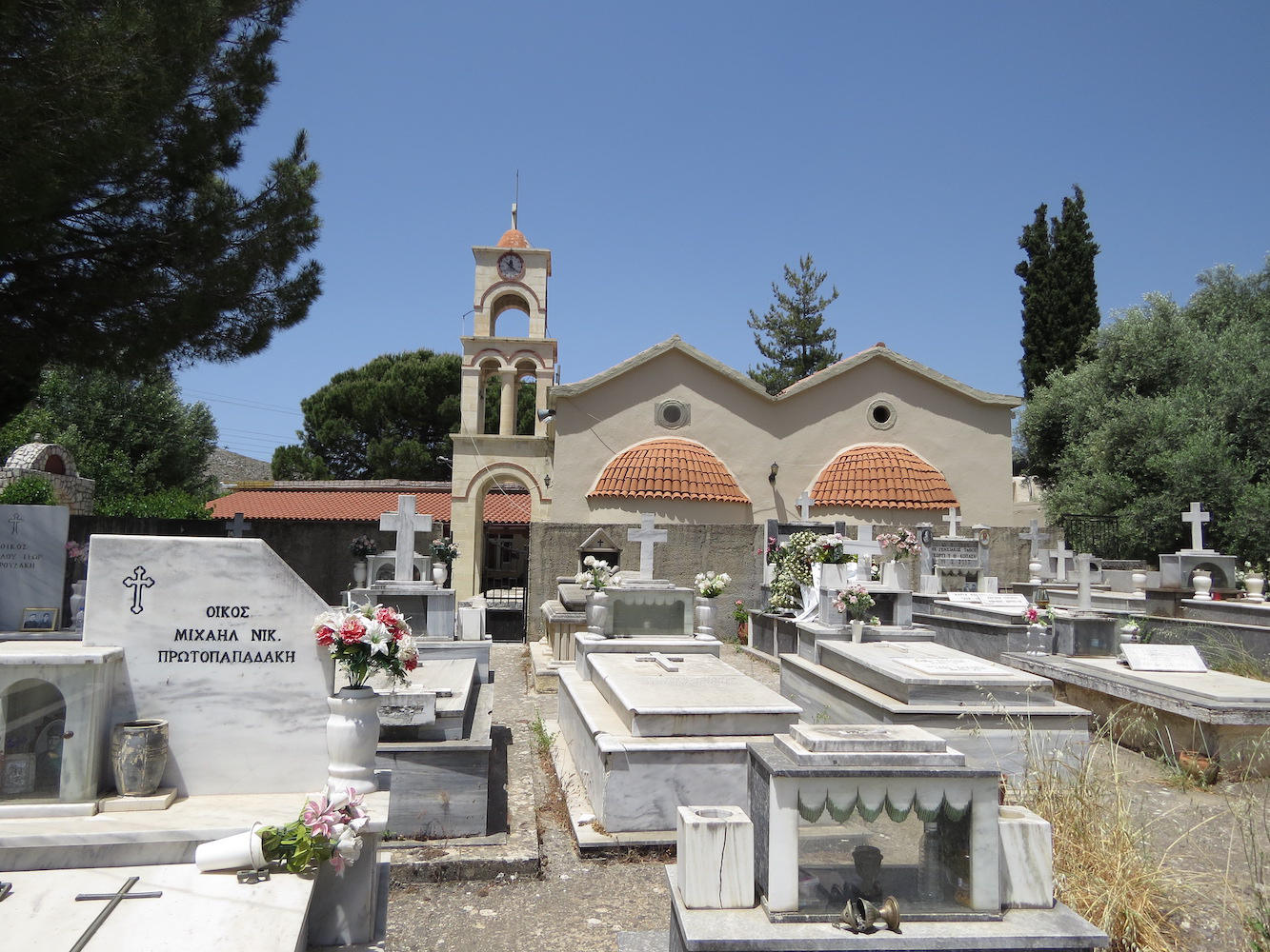 … weiter nach Anopolis. In Anopolis haben wir auch einen Stopp eingelegt. Der Ort ist klein, aber dafür, dass die Straße eigentlich nirgenwo mehr hinführt, doch größer als erwartet. Einzig sehenswert schien uns diese moderne Kirche mit Friedhof zu sein.